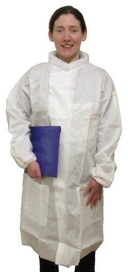 50gsm SMS disposable lab coats suitable for the pharmaceutical industry and many others. Antistatic, comfortable and hardwearing. Elasticated cuffs and snap poppers. Available with or without pockets.